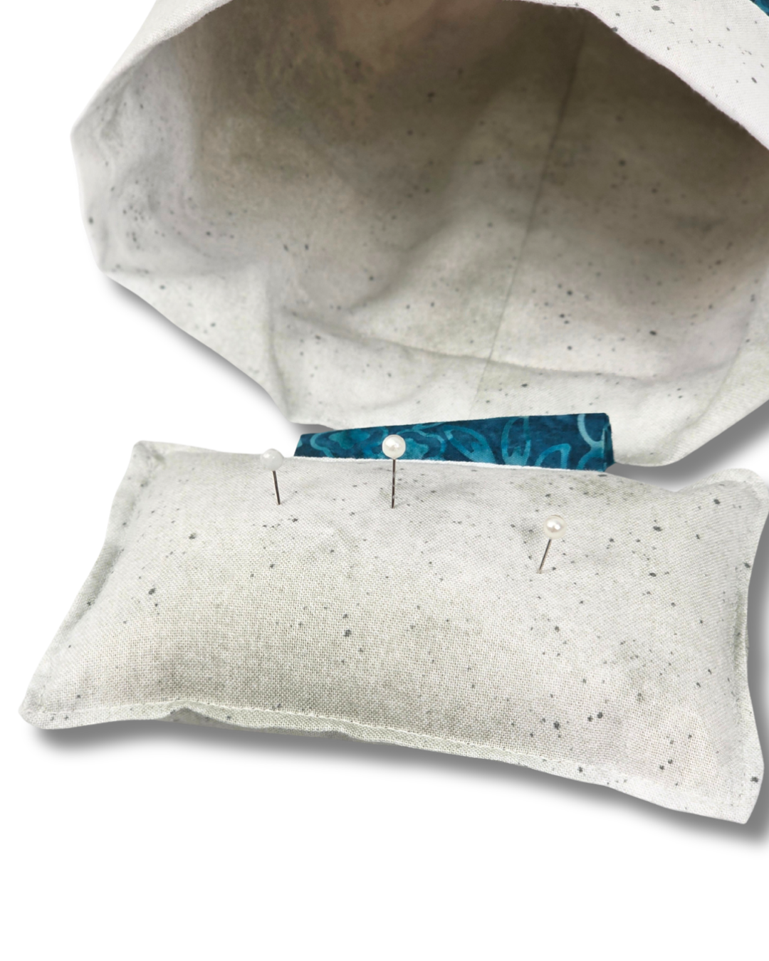This thread catcher keeps your loose threads tucked away while hanging neatly over the edge of your sewing table. Includes a built-in pincushion, making it a wonderful addition to keep your workspace tidy and your pins close at hand.