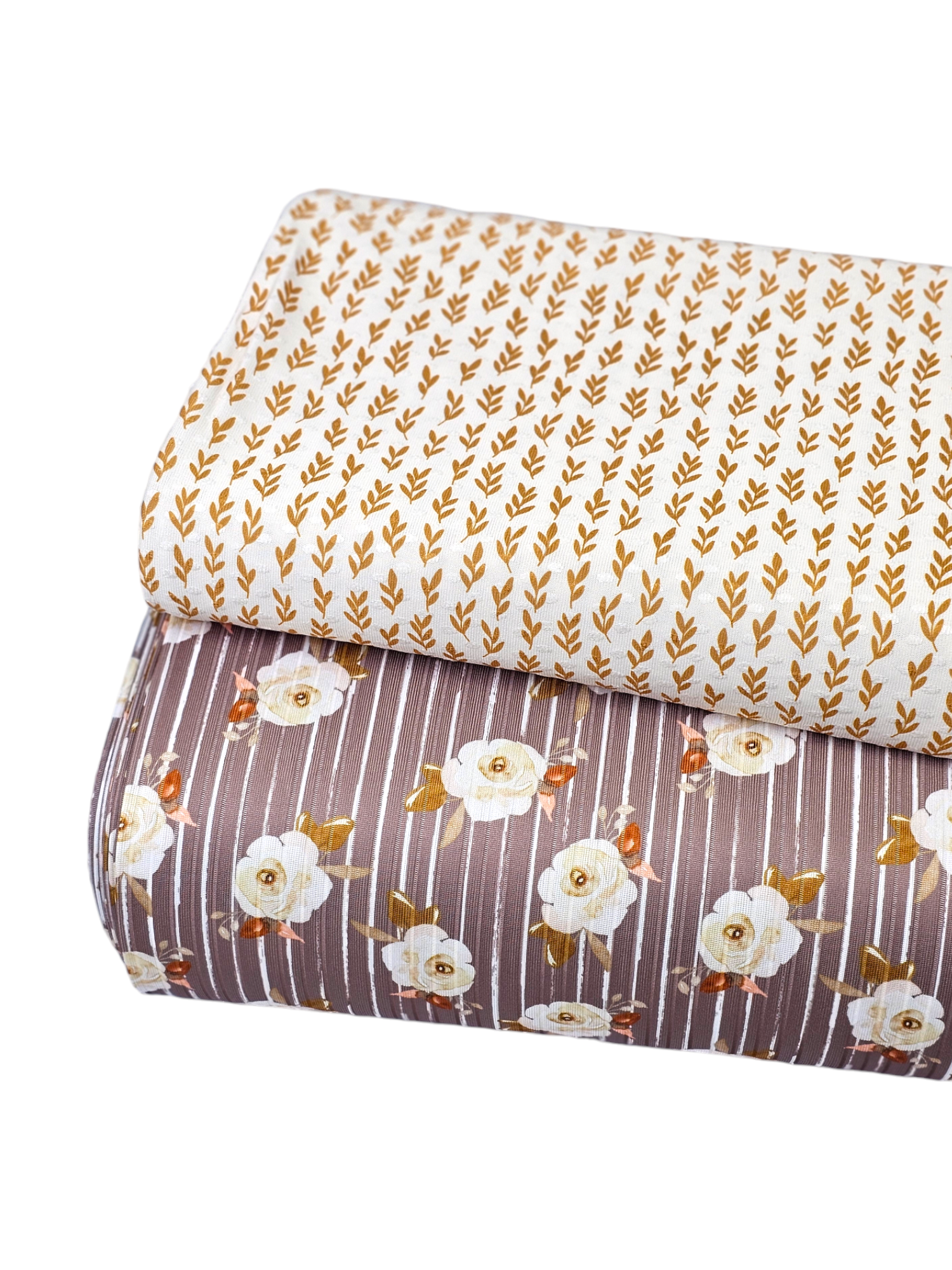 *Unique Design* Poly Ribbed Knit Watercolor Rose Stripe Cocoa